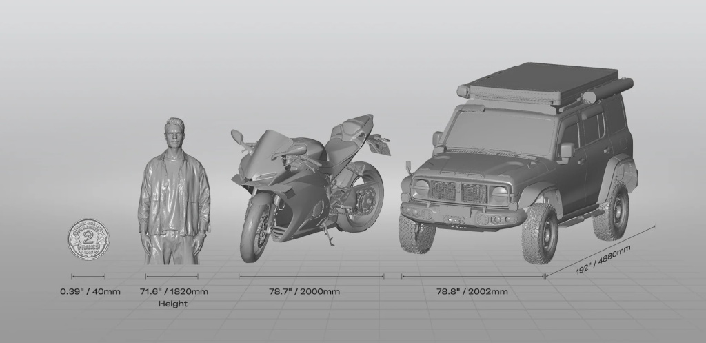 3D-сканер оснащен безопасными лазерами. Он работает с точностью до 0.02 мм и захватывает до 4,600,000 точек в секунду. Пять встроенных камер, включая длиннофокусные, обеспечивают широкий обзор и фиксируют детали с высоким разрешением. Диапазон рабочих расстояний от 200 до 1200 мм открывает доступ к разным задачам: от оцифровки деталей от 5 мм до сканирования крупных объектов размером до 4 метров. Вес около 500 грамм и эргономичная форма облегчают длительную работу.